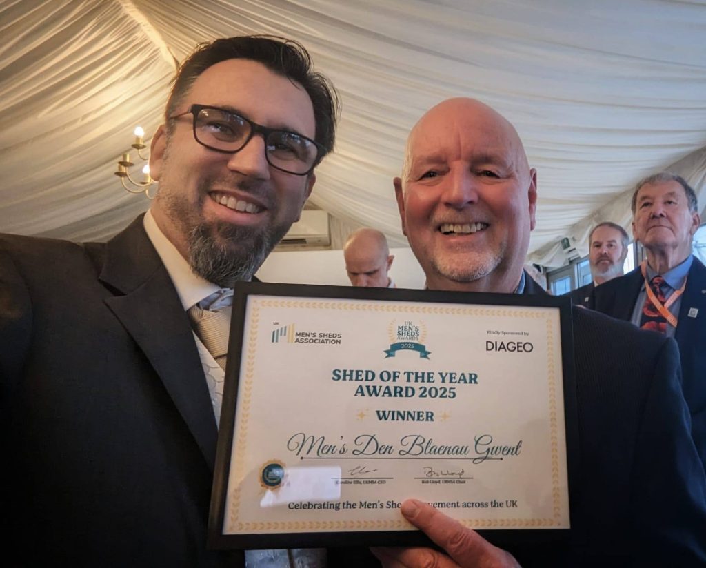 The prestigious title of UK Shed of the Year 2025 was awarded to Men’s Den Blaenau Gwent. We were commended for strengthening community ties by embracing diverse projects and member needs, including podcasting and growing our Ladies group for craft and emotional support. The standout intergenerational project saw the creation of a mini golf course built by Shedders with boys from the local school – aimed at improving school attendance and going on to be used by over 1,000 students – demonstrating our commitment to social inclusion, wellbeing, and innovative community engagement.